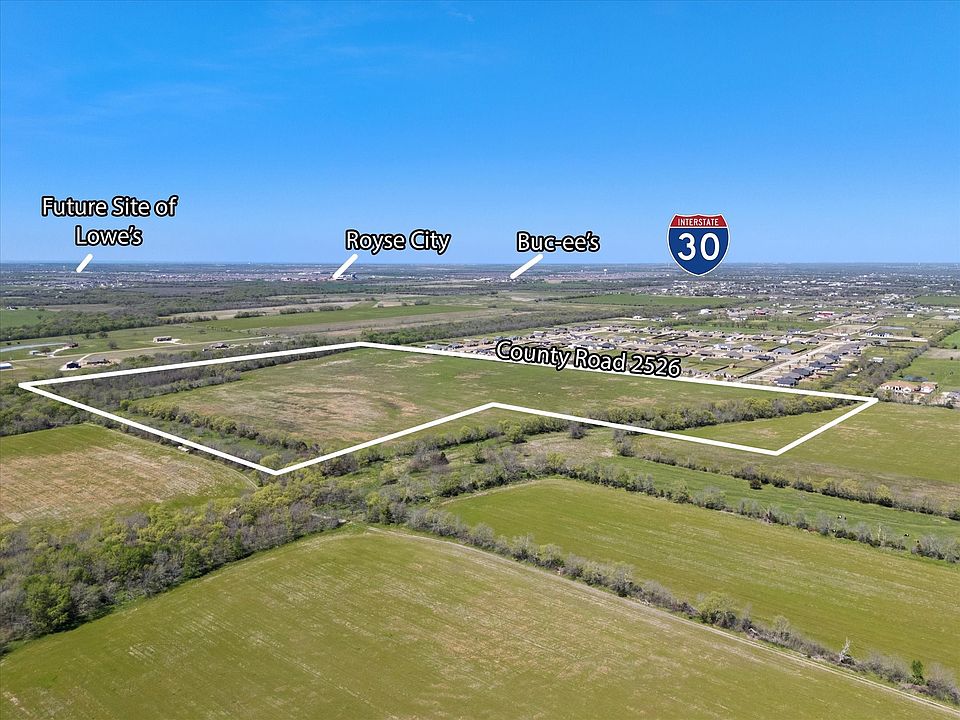 This 80± acre property is located south of I-30 within the Royse City ISD, offering approximately 1,766 feet of frontage along County Road 2526. Conveniently situated between FM 35 and FM 1565, the site provides excellent access and visibility in one of Texas fastest-growing regions.