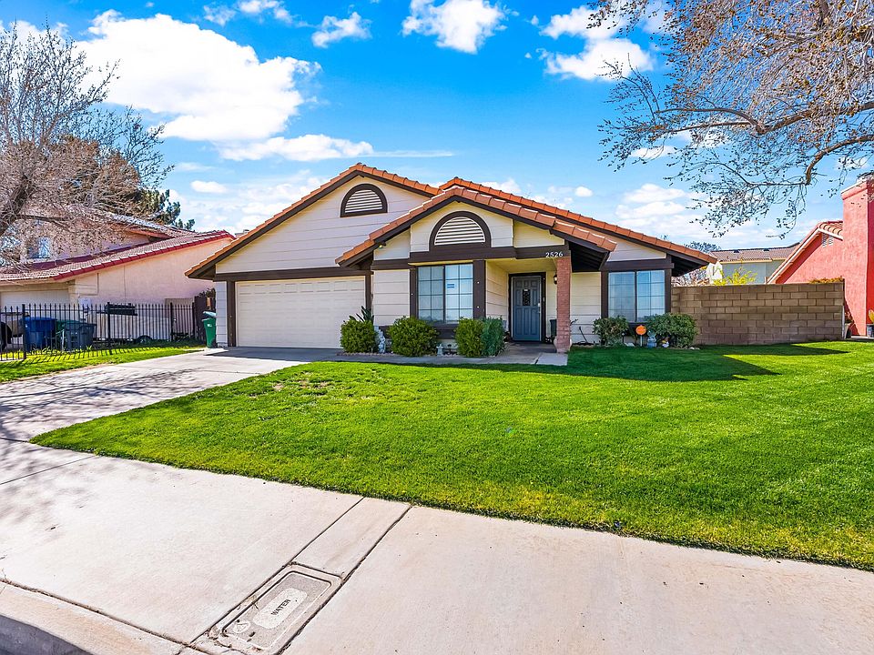 **Amazing Casa Bonita** Excellent location a place to call home Palmdale. This Beautiful cozy single story home features Front Porch Entry with green lush landscape. Home Interior Features 3bedroom , 1Bonus room that is the 4th bedroom, 2bathroom, Beautiful Master bedroom with Laminated wood floor & Retreat area.High vaulted ceiling in the living room Family room and dining area, Custom tile/ wood flooring throughout the home. Open kitchen layout with views to family room with Gas burning fire place.Upgraded Kitchen counter tops & Breakfast bar area for family gatherings (breakfast, Lunch, dinner). Stainless steel Appliances included (Gas range, Microwave, Dishwasher) & Stainless Sink. Beautiful Big Backyard with matured Fruit trees, Lawn, Shaded tree, Concrete slab with a Patio umbrella Cover for family entertainment and .plenty of space to design and built your pool in the future. Near by 2 Shopping Centers, Parks, Schools and more...Call for more details..FHA LOANS, V.A LOANS, OK