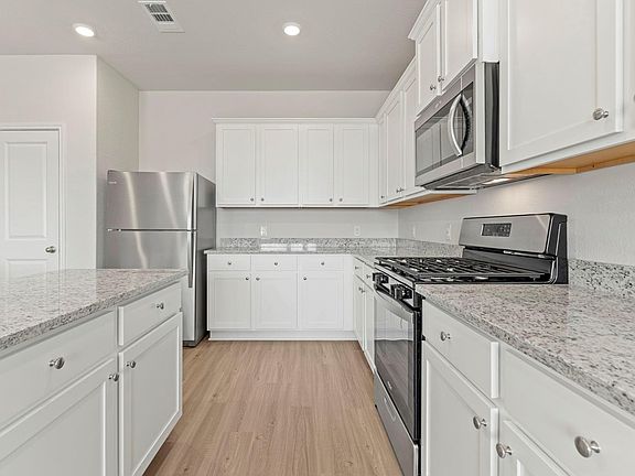 The Waller is a stunning two-story plan featured at Canterra Creek. This spacious home has an open layout with an exceptional chef-ready kitchen, a luxurious master retreat, powder room and covered patio found on the first level. Upstairs you will find a loft with two closets, a laundry room, three bedrooms and a bathroom. Seven closets are featured throughout the Waller floor plan giving your family all the storage you will ever need. You will be thankful to have space for all your favorite holiday decoration, kids’ toys, winter coats and still have space for more! Look forward to movie nights in the family room, gathering around the dinner table, baking parties in the chef-ready kitchen. The kids will also love having the spacious upstairs loft that will create the perfect play area for them and their friends. Endless memories are sure to be created.