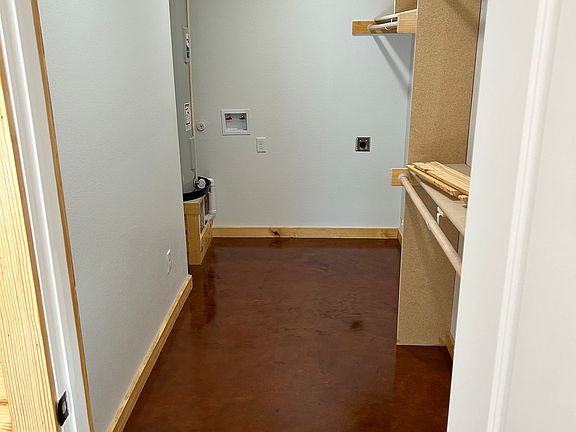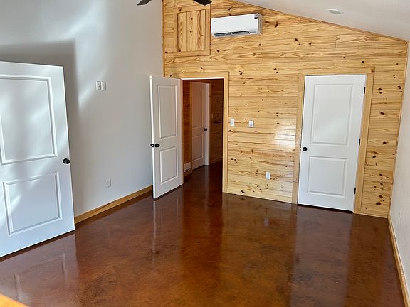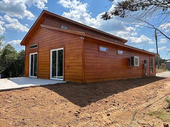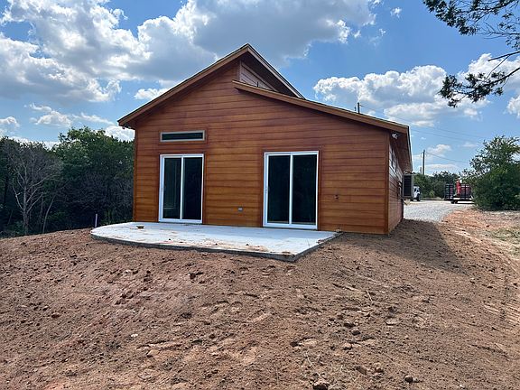 This cabin is built on the end of a court with the back yard on a green belt with a creek. It has a huge concrete back porch, full kitchen with range, microwave, dishwasher and refrigerator. Separate dining area that overlooks green belt. Huge bedroom, closet with laundry room.