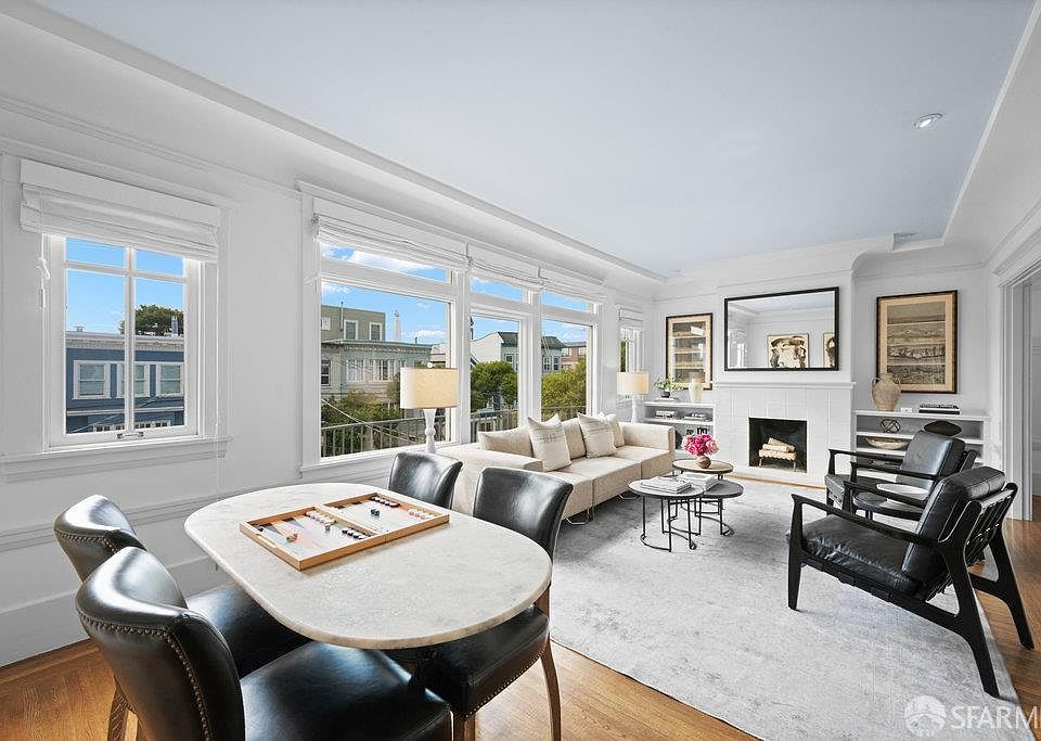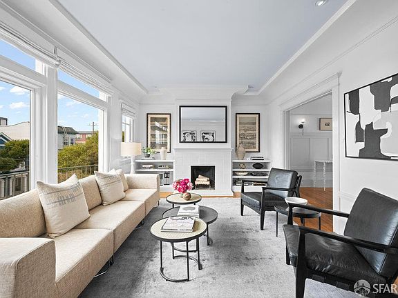 With breathtaking views of the Golden Gate Bridge, Bay and Marin Headlands, this tastefully remodeled condo sits atop a handsome, Edwardian building in the Lake Street neighborhood, offering an enviable blend of city living - a neighborly vibe plus easy proximity to iconic natural and cultural treasures plus world class dining. Awash in natural day light and featuring generously proportioned rooms, this upper unit seamlessly blends original architectural details with current amenities. High ceilings, hardwood floors, a wood-burning fireplace, and striking moldings harmonize with modern electrical wiring, a custom designed kitchen, updated baths and period-style hardware. The well-appointed, chef's kitchen features custom cabinetry designed to honor the original architectural style, stainless steel appliances, ample counters and abundant storage. The laundry and stairs to the lovely shared garden are located in the kitchen. Two large bedrooms and an office/sunroom look to panoramic views of the Golden Gate Bridge, Bay and Marin Headlands. A third bedroom, one full bath and one half bath offer convenience and flexibility. The garage offer one-car parking and storage. Located on a tree-lined block on coveted Lake Street nestled between the Presidio and Land's End