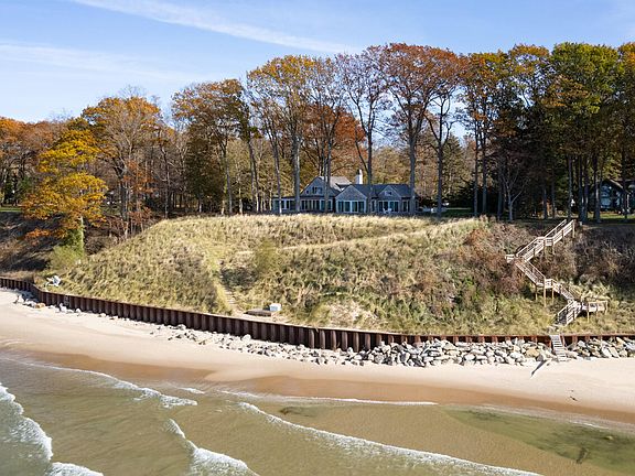 Discover Merry Acres! This stunning 4-acre Lake Michigan estate offers luxury, comfort, and exceptional living. Relax on the private beach, swim in the pool or spa, or enjoy the tennis court and trampoline. The fully renovated main home features expansive interiors with dramatic lakefront views. The main floor primary suite boasts a wall of windows, fireplace, a study, a luxurious bath with a steam shower and wooden Japanese soaking tub. Step out onto the deck and unwind in the hot tub swim spa at sunset. The second floor offers two private ensuite guest rooms. The guest house (1470 sq ft) and pool house include some handicap features, a cozy living area with fireplace, kitchen, dining area, three bedrooms, and two full baths. Both homes have finished lower levels adding 2 bedrooms and baths. Plus, two 3-car garages provide ample parking and storage. This estate truly combines lakeside serenity with luxurious amenities. This is an exceptionally unique, Lake Michigan retreat