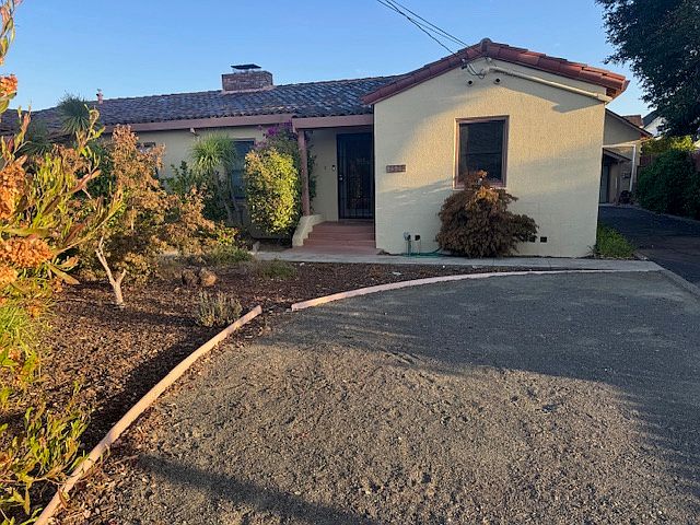 Lovely spanish style 2 bed 1 bath home with outdoor fenced deck and nicely landscaped front yard, 1 car garage, laundry room, A/C.