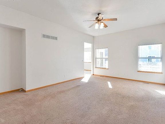 3 bedroom, 2 bathroom ranch style home with 9 foot vaulted ceilings. Has a large unfinished basement, main floor washer/dryer and a small covered patio outback. Master bedroom has large walk-in closet and a master bathroom. Close to Loveland shopping and only a 10 min drive to I25! * Attached Garage *Dishwasher *Central Air Conditioner *Ceiling fans *Lots of storage space *Breakfast bar *Sprinkler system *Allows pets with a separate pet deposit and monthly fee *Lots of guest parking available Tenant responsible for all utilities. To fill out an application go to www.realanswersllc.com (NO application fee). Tenant requirements can also be found on website. No smoking!
