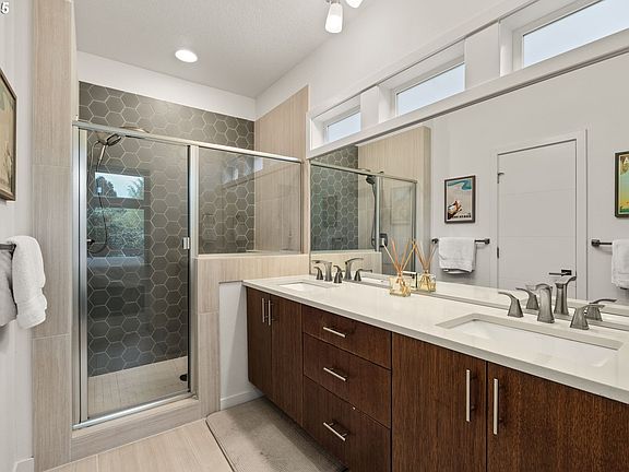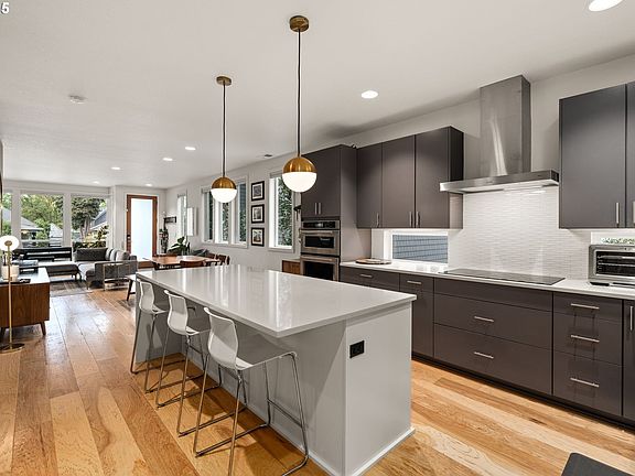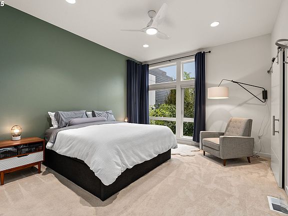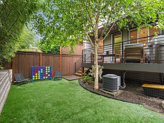 This 2019 contemporary, attached home delivers 2,400 square feet of modern living across three levels. With 4 bedrooms and 3.5 baths, the home combines quality construction from Everett Custom Homes with practical design and Earth Advantage certification for energy efficiency. The open floor plan features hardwood floors, high ceilings on the upper level, and a kitchen outfitted with waterfall quartz countertops and stainless steel appliances. Custom built-ins and triple-pane windows add function and natural light throughout. A gas fireplace anchors the main living space. Large bay windows throughout the home bring in abundant natural light.The primary suite includes a walk-in closet and an ensuite with double vanity and tiled shower. The large 4th bedroom with ensuite bath flexes as a bedroom, home office, media room, family room or whatever you need. Outside, a covered back deck off the kitchen is perfect for grilling and entertaining, while the turf backyard keeps maintenance low. A front porch offers space for morning coffee. The one-car, level garage with EV Charger provides interior access and includes a storage room. A tankless water heater and low HOA dues round out the practical features. The location puts you within walking distance of Division Street's restaurants, shops, and cafes. Parks and schools are nearby, giving you true inner-city lifestyle without sacrificing space, modern amenities, or any maintenance headache. This is an un-expected gem in one the most desirable urban neighborhoods in Portland. ENERGY SCORE 10.