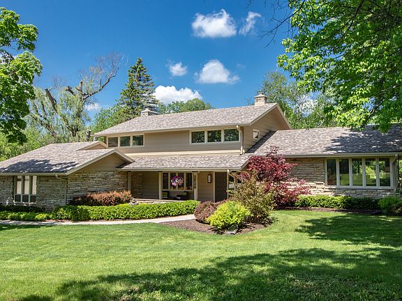 Secluded 5 acre oasis w/ specatular 1 acre spring fed pond with pier. Situated on quiet cul de sac in River Hills, this 4bd 3bth lannon stone home has been impeccably updated. New carpeting, baths, AC, boiler, roof & chimney, refinished birch HWFs. Convenient laundry/mudroom, 2 fireplaces, eat-in kitchen w/SS appliances, subway tile, granite & french doors to your outdoor patios. 2 stall stable/barn awaits your horses or the artist studio/ woodworking shop you've been dreaming of. Fenced play area for pets, full concrete run & doghouse and a backyard fire-pit that seats six. This charming home will captivate your senses & your heart.