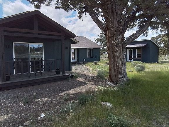 Offering this open and bright single level home on almost 5 acres with great views, vaulted ceilings,kitchen bar, , rooms for animals and toys, storage buildings and attached double car garage converted to additional 440sf living space.
