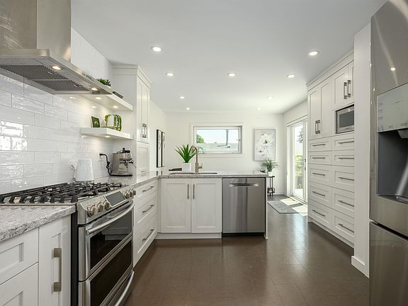 Extensively updated family home on a sun-soaked 7,150 sqft lot! Situated on a quiet cul de sac, this 2,746 sqft, 4 bedrm, 3 bathrm home has been thoughtfully reno'd over time w/ outdoor space for family, entertaining, & gardening w/ lots of fruits and vegetables established in the backyard! The main lvl features a spacious living & dining rm, that connects to your modern kitchen & thru French doors to a massive, SE facing deck, to take in the all-day sun w/ 180-degree views & clear line to Mt Baker! The main also has 3 beds, 1.5 baths, w/ 2 pc ensuite & deck out to the yard in the primary! Below is suite ready w/ 1 bed, 1 bath, rec rm, storage, workshop, & mud/laundry rm w/ entry to the dbl car port. Get quiet enjoyment w/ dbl pane windows, new HW Tank, HE furnace, & A/C!