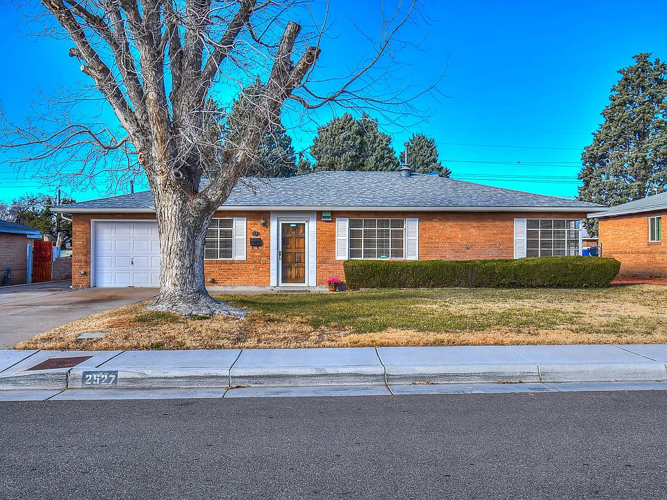 Welcome this lovingly cared for Brick home in the popular Hoffmantown neighborhood. This home features brand new carpet, and a versatile floor plan with 2 living areas, and a formal dining area. Family room has beautiful wood ceilings and a cozy fireplace. Nice size kitchen with great counter space, and a nice window that overlooks the backyard. Master suite is spacious, as well as the other bedrooms. Lovely backyard with mature trees and side yard access. Come see this move-in ready home today. *New Roof completed in April 2017, new evap cooler, water heater, and garbage disposal too*