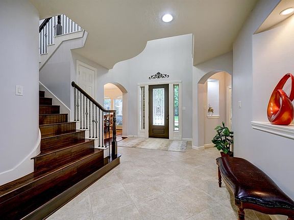 Ready for Move-in with fresh new color! Near Hwy 99 & The Woodlands. This majestic lakeside home has the primary & guest suite on the first floor along with tastefully designed living/dining/kitchen & an office/study. Soaring ceiling & windows in living area. Slate patio located off breakfast area for lake/fountain view. Large yard has space for a pool. Upper level provides 3 additional bedrooms & 2 baths. A spacious activity area for games, TV, or exercise. Juliet balcony overlooks 1st level living & exterior covered balcony is another refuge to the peaceful lake waterfall. Spacious kitchen provides lots of cabinets/drawers, counter space & island along with recent gas cooktop. Butler pantry transitions to elegant dining room. Large floored walk-in attic with tankless water heater & full-house water filtration system. Tandem 3-car garage w/50 amp EV/RV outlet. New 50 yr. Roof-2021. Community pool, splash-pad, 2 play grounds & 9 lakes w/fountains. Never Flooded.