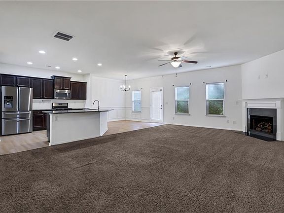 Beautiful, END-UNIT open concept townhouse in the coveted Townhomes at Morgan Chase in Buford! Hardwoods in foyer area, carpet throughout. Granite countertops, stainless steel appliances with a refrigerator, along with a huge island in kitchen area. This floorplan has the the bonus/loft area upstairs; Oversized owner's suite with a separate tub and shower. Blinds on all windows and very spacious townhouse. Beautifully built with plenty of upgrades throughout.