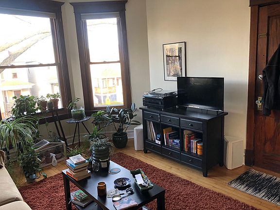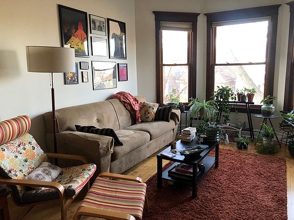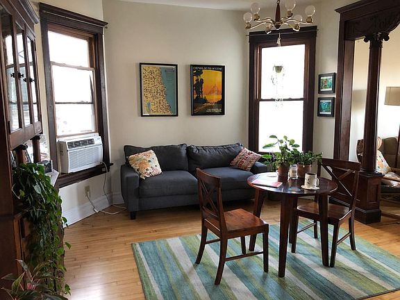 Very Sunny 2-3 Bedroom or separate Home office! Located on quiet street in Logan Square. Hardwood floors, natural woodwork, Maple Kitchen with dishwasher, outside deck, nice neighbors. Equally sized modest bedrooms. Lots of space to spread out. Updated bath with vintage tub on legs, outdoor space. Available June 1-15. No Dogs. No smoking of any product. Quiet enjoyment of others is required. Price based on double occupancy.