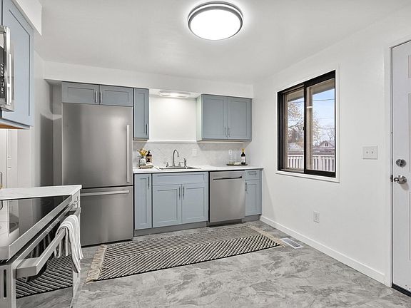 This gorgeous 5 bedroom, 2 bathroom home situated on a spacious corner lot is ready to impress! Completely remodeled from top to bottom, it features a brand-new roof, all new kitchen appliances, new soft close cabinets, polished hardwood floors upstairs and fresh new carpet thought the basement. The floor plan flows seamlessly, making for an inviting atmosphere. Outside you will find a freshly painted oversized deck, perfect for entertaining. You'll love the fully fenced back yard with natural privacy and a dedicated dog run. The oversized two car garage provides ample storage. This gem has everything you're looking for. Don't miss your chance to call this one home.