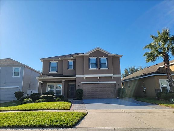 LOFT PLUS 5 BEDROOMS - WOW! Contemporary Ryland built home offers room for everyone in the family. Inviting front porch welcomes you as you enter with the formal living room to the left. The kitchen offers solid wood cabinets, granite counter tops, walk in food closet along with a spacious dinette area. Plenty of seating at the breakfast bar that opens to the large family room. 1 bedroom and full bathroom downstairs and the rest upstairs including the utility room and loft. The 9x38 lanai is huge and under truss. Great for entertaining or just relaxing. Backyard is fenced offering plenty of privacy with side gates on each side with brick pavers. Home has gutters and downspouts and irrigation system. All appliances stay to include refrigerator, range, dishwasher, microwave, washer and dryer. Fresh exterior paint, new carpet and blinds, wireless garbage disposal controls and A/C ceiling vents with U/V lights. Security cameras and security system stay as well. Only 15 minutes from Lake Nona Medical City, Orlando International Airport and Disney and Universal Theme parks. Call today to schedule your private showing.