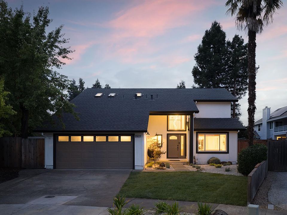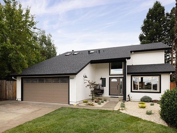 Tucked at the end of a quiet cul-de-sac in Napa's coveted Vineyard Estates, 2527 Vintage Court blends thoughtful design, modern upgrades, and an ideal West Napa location into one elegant offering. Extensively renovated in 2023, this four-bedroom, two-and-a-half-bath residence sits moments from Alston Park and Wine Country Avenue, offering privacy, tranquility, and easy access to the best of Napa living. The light-filled two-story home welcomes you with a soaring entry, cascading chandelier, and open staircase. Designed for entertaining, the gourmet kitchen features dual peninsulas flowing into the dining and family rooms. Recessed lighting, custom finishes, and luxury vinyl plank flooring add warmth and durability throughout. The main level includes a living room, formal dining area, powder room, and family room with fireplaceall opening to a private backyard with patio, lounge area, stone fire pit, and raised garden beds surrounded by mature trees. Upstairs, the primary suite offers skylights, a walk-in rainfall shower, and marble double vanity, while three additional bedrooms share a full bath. With new roof, HVAC, plumbing, and electrical, plus a two-car garage, this turnkey home defines modern comfort and timeless Wine Country style.