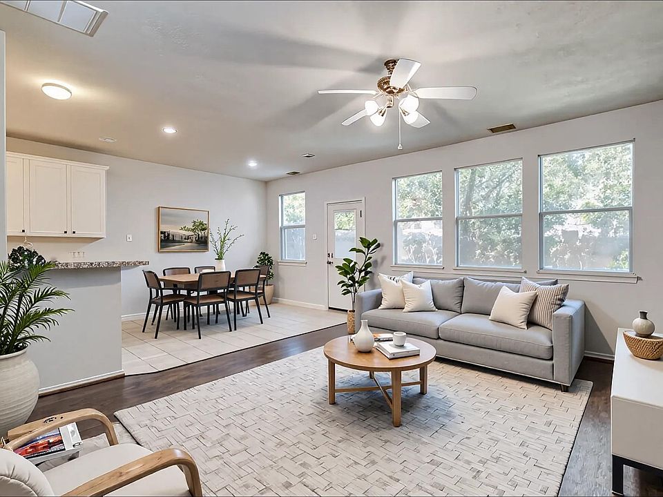 Stainless steel appliancesGranite countertopsOpen concept layoutRemodeled kitchen
