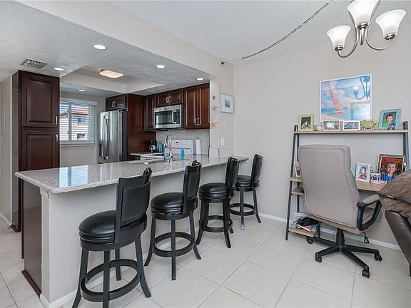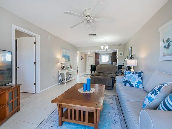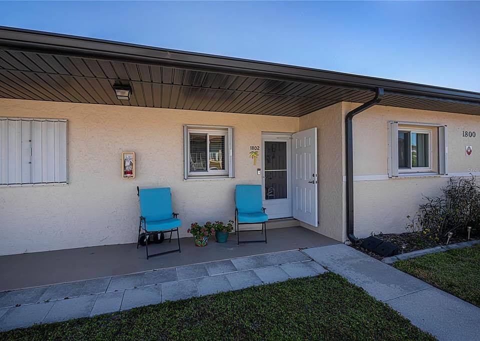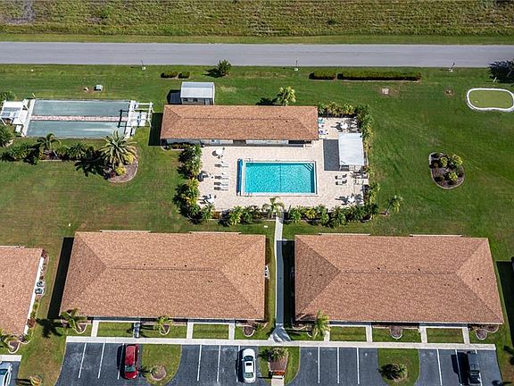 Whether year-round or seasonal, this one-story condo is a showstopper! Lots of natural light in this remodeled and upgraded home AND a privacy-minded backyard view from your tiled lanai. A gracious covered front porch opens to a beautifully remodeled kitchen and great room. Newer appliances, AC, and hot water heater. HOA dues are low and include a clubhouse, heated pool, water/sewer and exterior maintenance. Convenient and functional accordion hurricane shutters, as well. Superb location for ease of shopping, dining experiences, golfing, and local beaches. Priced to sell, so make your appointment to see this home today and enjoy the Florida lifestyle now.
