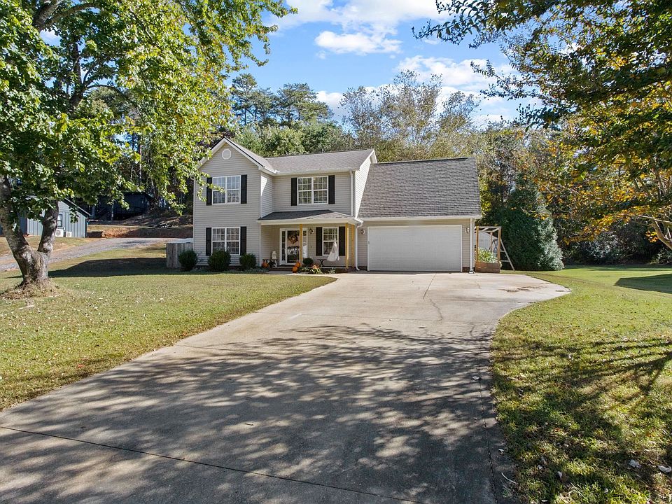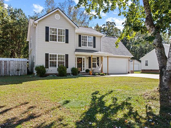 Welcome to this beautifully maintained 3 bedroom/2.5 bath home nestled on a half acre lot offering plenty of privacy, yet just minutes from downtown Greer. The rocking chair front porch invites you into a spacious living room with a cozy gas log fireplace and tons of natural light. The home features a large kitchen with an eat-in breakfast area, granite countertops, stainless steel appliances, and gorgeous floating shelves. The laundry room is located off the kitchen and provides additional storage. Upstairs, you’ll find the spacious primary suite as well as two additional bedrooms, bathroom, and a huge flex space perfect for a home office, playroom, or media space. Enjoy quiet mornings on the inviting front porch or relax on the large patio warming up at the firepit in your private, tree lined backyard. In the backyard, you will also find additional storage as well as space for outdoor animals. Recent updates include new roof (2019) and new HVAC (2025). This home provides a peaceful setting with NO HOA, yet is conveniently located mins to downtown Greer and close to tons of shopping and dining options.
