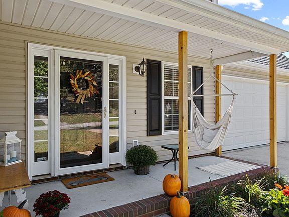 Cozy gas log fireplaceRocking chair front porchLarge patioInviting front porchLarge kitchenHalf acre lotStainless steel appliances
