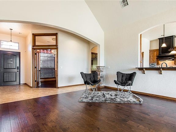 Total Package Of Features You Won't Find Anywhere Else! Located near shopping & schools, this one won't disappoint! Beautiful landscaping welcomes you inside to rich wood flooring & endless natural lighting. Open concept floor plan offers quality in every detail including impressive rock fireplace, vaulted ceiling, & convenient study. Your kitchen is equipped with premium granite, chef's gas cook top, walk-in pantry, claw foot custom cabinetry, island, & all stainless steel appliances. Master suite retreat includes wood flooring, large jetted soaking tub, his/hers granite vanity, large walk-in shower, & the walk-in closet of your dreams! Wood flooring continues to the upstairs bonus room with so many possibilities. Other amenities include security system, Nest thermostat, in-ground storm shelter, luxurious sauna, hot tub, underground sprinkler system, tankless HWT, & community pool nearby. Just minutes to I35 makes and easy commute to anywhere. Put this one first & end your search!