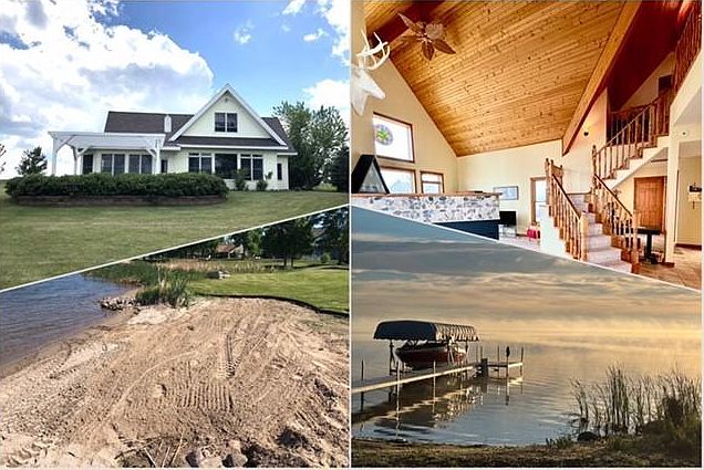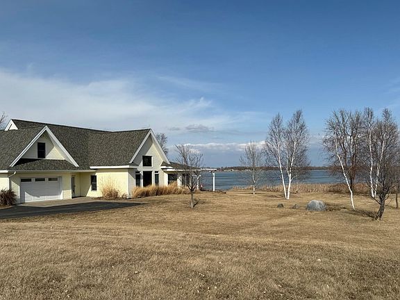 Alexandria Area! Indulge in vacation vibes at this remarkable 5-BR lakefront oasis! CABIN crafted for lakeside living, its custom design maximizes views of Lake Reno through abundant windows, infusing every space with natural light. Step seamlessly from the sunroom to the lakeside patio, boasting 154ft of level lakeshore for tranquil relaxation. Inside, soaring ceilings adorned with wood tongue & groove, expansive beams create a captivating ambiance throughout. Main flr primary BR, ¾ BA, ldry, sunroom, great rm, spacious kit/dining. Zero-entry access, enjoy easy transitions from house to garage & straight to the lake. Upstairs, 4 BRs, a full BA, & cozy nook, ideal for extra sleeping space. Patio HM In-floor heat ensures comfort on the main floor, including insulated & sheet-rocked GAR. Cozy year-round with high-velocity heating & CA. Constructed with ICF & SIP, Anderson windows, CA (2023), shingles (2023), Sold mostly furnished with VRBO potential, dock and 1 YR HSA Buyer HM Warranty