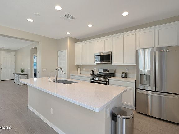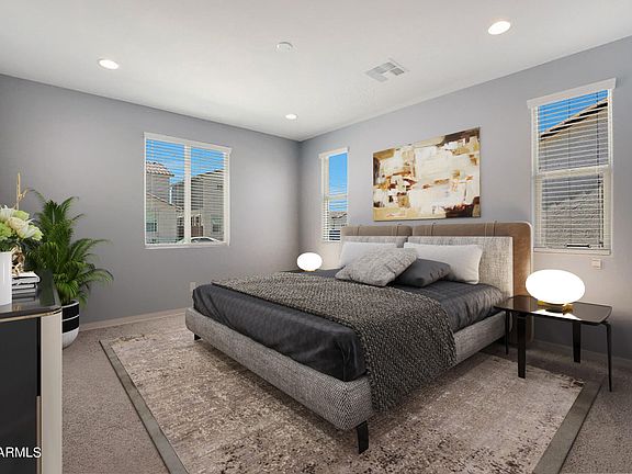 Welcome to this gorgeous almost new home in Rancho Mercado. It includes two bedrooms and two bathrooms with upgrades throughout. The spacious great room offers plenty of light and blinds on all the windows. The kitchen is bright and open with a quarts countertop, a large Island and quaint dining area. The primary suite is the perfect size with a private ensuite. This house has everything you need to call home. Rancho Mercado is an amazing community that offers its residents activities to keep you busy all year round. The resort style Pool is huge with a Ramada and tables with seating. It also includes a fenced dog park, a playground, a volleyball court and basketball court. Do not miss out on this perfect opportunity