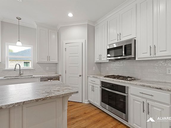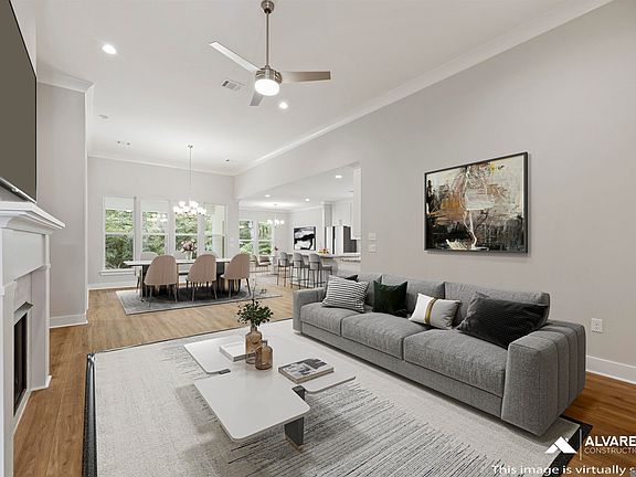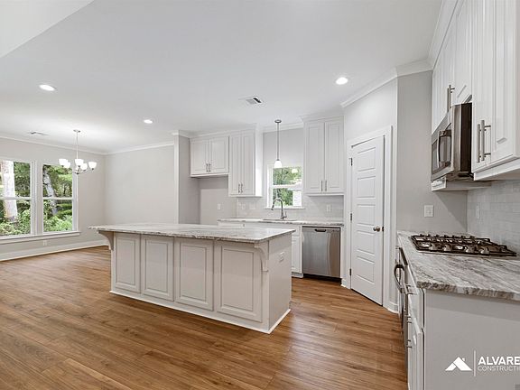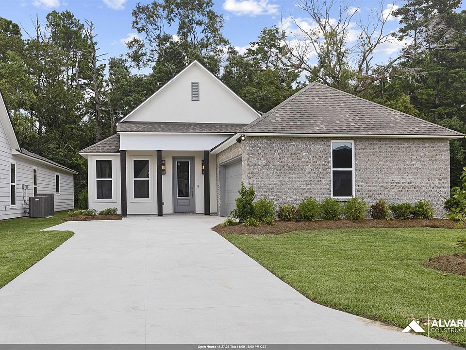 Estimated completion: complete and ready to move in The Maple is a thoughtfully designed one-story home offering 4 bedrooms, 3 full bathrooms, and a 2-car garage. This open-concept floor plan features 12' ceilings in the main living areas, a spacious living room with a gas fireplace, and a gourmet kitchen with a central island, walk-in pantry, and breakfast nook that opens to an extended rear patio. The private owner’s suite includes a large walk-in closet, dual vanities, separate shower, and soaking tub. Secondary bedrooms are well-placed for privacy, each with nearby bathroom access. A full-sized utility room is conveniently located off the garage entry. Interior upgrades include Level 2 vinyl flooring in bedrooms 2, 3 & 4, Level 2 granite countertops (Brown Fantasy), upgraded tile backsplash, custom tile fireplace surround, and built-in shelving. Additional features: wood-framed mirrors, cabinet built-in over toilet, satin nickel pulls, and extended 144 sq ft concrete patio. Located in South Creek, a new Alvarez Construction community in Denham Springs near Wax Rd and Hwy 16. This 103-lot development includes waterfront homesites, curb and gutter, and green park spaces. All homes come equipped with a WiFi-enabled SmartHome system that includes alarm monitoring, smart thermostat, exterior security cameras, and garage door control. Enjoy modern comfort in a beautifully planned setting with high-end features throughout. To view this home stop by our model home at 10603 Deric Ave. Denham Springs, La 70726.