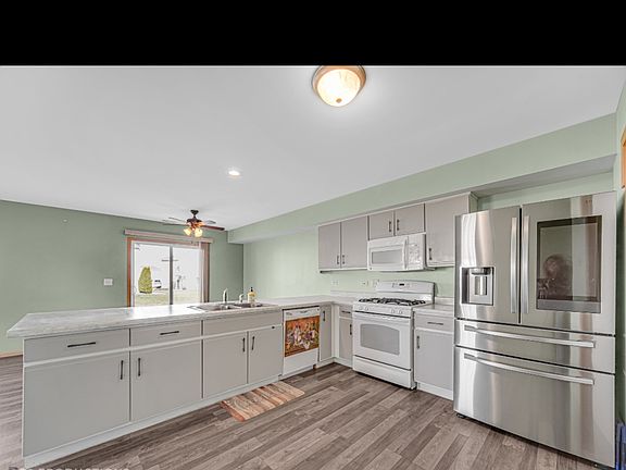Spacious 3 bedroom town home with 2 1/2 baths. 2 car attached garage End unit that has patio doors open up to a large open grass area. Nice open floor plan.Plenty of windows that leave home light and bright. Beautiful laminate floors on 1 st level.all appliances stay with home.