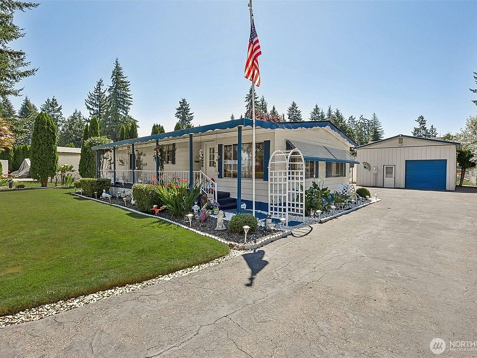 Cozy 1568 sq ft home on fully fenced, professionally landscaped ¼ acre in desirable Scott Lake Community. This meticulously kept home offers AC/heat pump, 2 bdrms, both w/its own bthrms. The primary bath with lrg soaking tub. The kitchen & dining areas have newer LVP flrs & a dbl oven. Living rm is spacious! Outside, a large covered frnt porch allows you to sit & enjoy the scenery, or for lrg gatherings, the bkyrd is even more inviting & accommodating. Huge detached garage offers separate wrkshp, plenty of storage & wired for generator. Plenty of outdoor & RV parking too! Home has a new 30yr roof & garage has a metal roof. Community offers: Club house, private boat launch w/dock & 9-hole golf course, large park w/playgrnd, & swim area