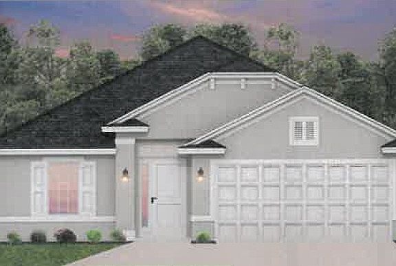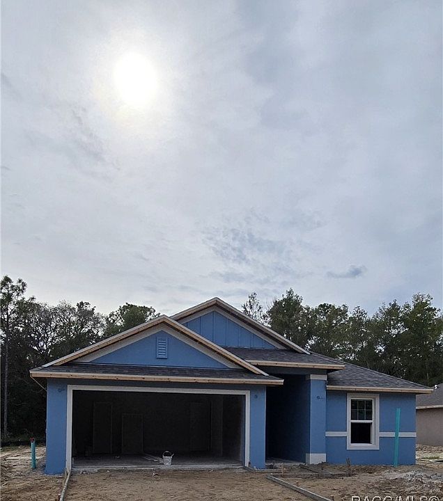 Four-bedroom home featuring a split floor plan with two bedrooms at the front and the third bedroom behind the kitchen. Highlights include a kitchen island with wood cabinetry, vaulted ceilings in the great room and dining rooms, a separate laundry area, and a primary suite with an en-suite bath and walk-in closet. Ceramic tile flooring throughout with carpeted bedrooms. Stainless steel appliance package included. Large lanai with wooded back views. Conveniently located near shopping in Inverness. No HOA or CDD.