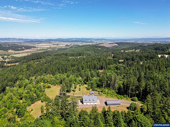 This one-of-a-kind 6,252 SF Barndominium (3,252 living space, 3,000 attached shop) sits on 40 private acres with sweeping views of the Willamette Valley, Mt. Hood, and Mt. St. Helens. Designed & built by Boylan Homes. The lower level features an attached shop with 8+ parking bays, 1.5 bathrooms, multiple storage mezzanines, and a spacious office. Upstairs, the main living area offers an open floor plan with vaulted ceilings, engineered oak flooring, and 100-year-old reclaimed