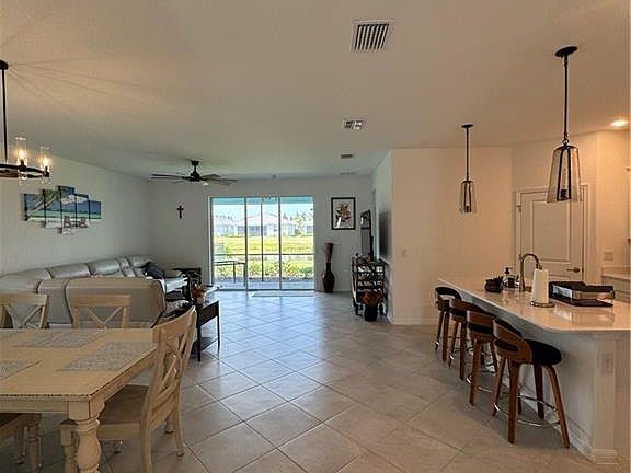 Covered lanaiQuartz countertopsPreserve viewsSpacious kitchenTile extended throughout homeWhite cabinetry