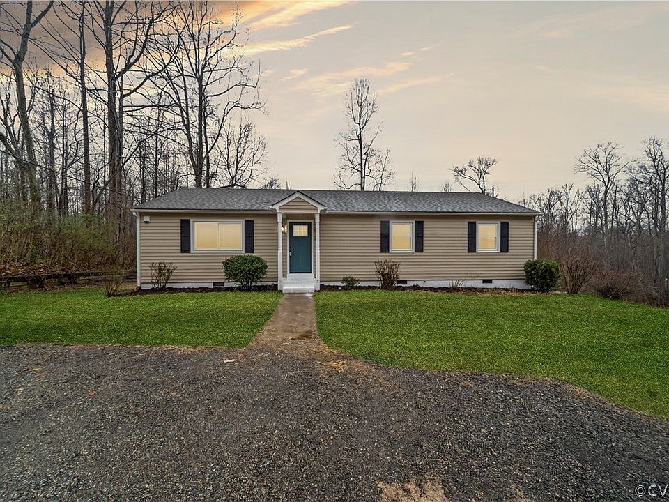 You’re going to LOVE this tastefully renovated, spacious 1540 square foot, 3 bedroom, 2 full bathroom, single level home situated on over 1 ACRE in the heart of Powhatan. This home boasts a brand NEW Carrier hvac system (2023), NEW tankless water heater (2022), NEW gas fireplace (2023), all NEW LED light fixtures, NEW custom cabinets with gorgeous honed granite counters, NEW stainless steel appliances and fresh paint through out. As you enter the home you are greeted with beautiful newly refinished hardwoods throughout and a bright open layout that flows into the kitchen/dining area. Directly off of the kitchen and dining area is a spacious sunroom with brand new carpet. Just down the hall you will find a newly tiled full bath and 3 generously sized bedrooms including the primary bedroom and en-suite with brand new vanity, floor to ceiling shower tile and glass enclosure. There is a detached shed and plenty of room for outdoor entertaining!