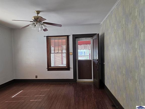 Perfect place to start a new chapter! This low-maintenance, move-in ready home has been well cared for. The newer furnace and AC have been serviced biannually through Paitson’s, ensuring peace of mind. All windows have been replaced, the water heater recently serviced, and the backyard features a new privacy fence. The kitchen is updated with stainless steel appliances, soft-close cabinets, and a fresh, modern look. The dining room includes a built-in china cabinet and a distinctive wall mural, giving the space personality you won’t find in every home. This could easily be a two bedroom home. Currently one of the bedrooms has been converted into a main-level laundry room, but hookups remain in the basement if you prefer to move laundry back down. Please note, you pass through one bedroom to reach the other. Bathroom has a walk-in shower and handy linen cabinet that stays. There’s also a laundry chute to the basement, and an additional shower downstairs. The backyard is lovely in bloom, with a pink weeping cherry willow, lilac bush, and rose of Sharon adding color and charm. There is a ramp leading to the back door for easy access. Seller will leave extra flooring for the new owner. Easy to heat and cool, this home is ready for you to move right in and enjoy!