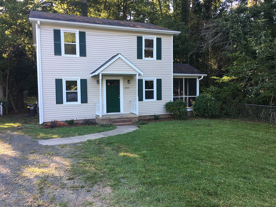 Two story home with first floor master in convenient location close to Duke and Interstate 1-85. Large back yard with playhouse/shed and small creek. Large shaded back deck perfect for entertaining. Brand new siding, new vinyl windows, new carpet in bedrooms, new countertops, fresh paint. Large bedrooms upstairs with extra room that could be used as a nursery or office and has its own closet. Two full baths. Private screened in porch on side of house. This house will not last long.