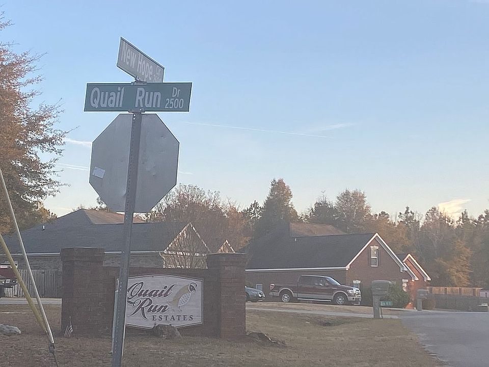 2529 Quail Run Drive offers the comfort of privacy on 1.37 acres where you can custom build your home or have a manufactured home site. Land has been surveyed and a soil test report is available. Wooded lot. Mailbox at the road and orange land markers for visuals. New construction in the area, but this property offers more land and privacy than smaller builder lots.