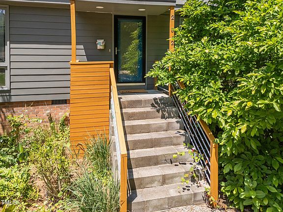 This stylish ranch just minutes from downtown Raleigh blends charm with thoughtful updates. Inside, hardwood and tile flooring create a seamless flow, while the layout feels surprisingly spacious. The family room is bright and airy with large windows and tall ceilings that fill the space with natural light. The updated kitchen is stylish—featuring a gas range, farmhouse sink, 42'' cabinets, leathered granite countertops walk in pantry, and a custom wood breakfast bar. Enjoy meals in the dining area with double sliding doors that open to a serene screened porch—perfect for indoor-outdoor living. The primary suite is a true retreat with vaulted ceilings, double closets, a wall of windows, and a private bath complete with jetted tub, modern tilework, and a sleek new vanity. Step outside to a backyard designed for relaxing and entertaining—complete with an oversized deck, lush plantings, raised garden beds, and a dedicated potting shed. Additional perks include a tankless water heater and outbuilding for extra storage. Just steps away from Lockwood Park, the Raleigh greenway and Powell Elementary!