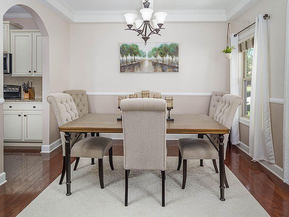 Beautiful home in desirable Vaughn Village — perfect for a growing family! Enjoy hardwood floors throughout the main level and ceramic tile in the baths. The formal dining room features elegant coffered ceilings. The kitchen offers stainless steel appliances, granite countertops, a spacious island, pantry, and tile backsplash. Open-concept living room with gas log fireplace. Convenient main-level bedroom with full bath. Upstairs, a large bonus room brings in abundant natural light. The primary suite impresses with tray ceilings, double walk-in closets, and a deluxe bath. Relax on the screened-in porch and take advantage of the backyard storage shed.