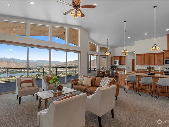 Is a Million Dollar View and a custom built rambler on the top of your wish list? Then look no further! This peaceful oasis welcomes you with soaring ceilings in the Great Room that frame the Columbia River And Cascade Mountain Views! Off the entry is a home office or 3rd bedroom. On the opposite side is the Dining Room for all your entertaining needs. The Cook’s Kitchen is the hub of the home and offers 2 microwave/convection ovens and double ovens and overlooks the Breakfast Room with coffee station. An Extra large utility room with extensive cabinetry and counterspace for all your hobbies! Just steps away is the Bonus Room and powder bath.