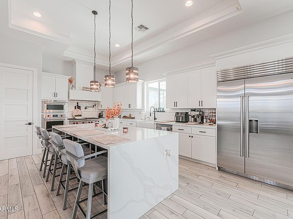 Step inside this truly one-of-a-kind, custom home featuring soaring 12' ceilings, elegant wrought iron double doors, complete basement and free-standing casita. The gourmet kitchen shines with quartz countertops, a waterfall island, Wolf appliances, gas cooktop with pot filler and a Sub-Zero fridge. All spacious bedrooms offer walk-in closets, including a serene split master suite with dual vanities, large tiled, walk-in shower and two closets. Enjoy the full casita with its own garage and the oversized main garage with epoxy flooring, extra storage and a dog wash. Outside, fenced grounds include covered stalls for animals with power and water, fruit trees, a kids' court, and a stargazing deck. No HOA—freedom and charm await! Full upgrades list available upon request.