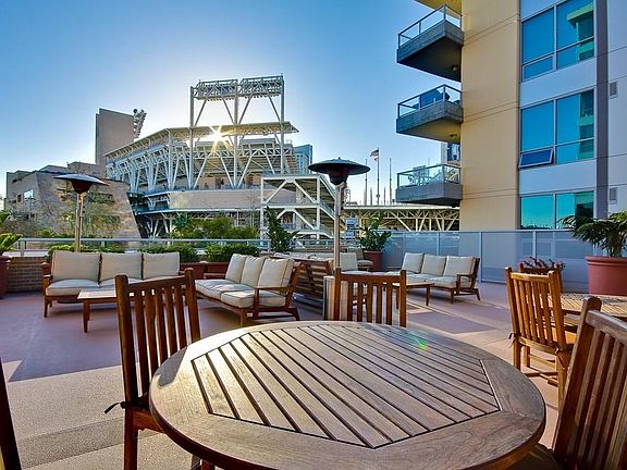 Fully furnished, move in ready. Hip east village furnished condo with views of Coronado bridge and bay. Sleek & stylish with granite counter tops and stainless steel appliances, this cozy, immaculate unit is perched above the beautiful park terrace courtyard. Open kitchen creates great entertaining . Across from Petco Park, enjoy ballgames, special events or leisurely afternoons at the park. East village, the largest urban neighborhood in downtown San Diego, is home to cool restaurants, clubs & shopping. Walk through video available upon request.
