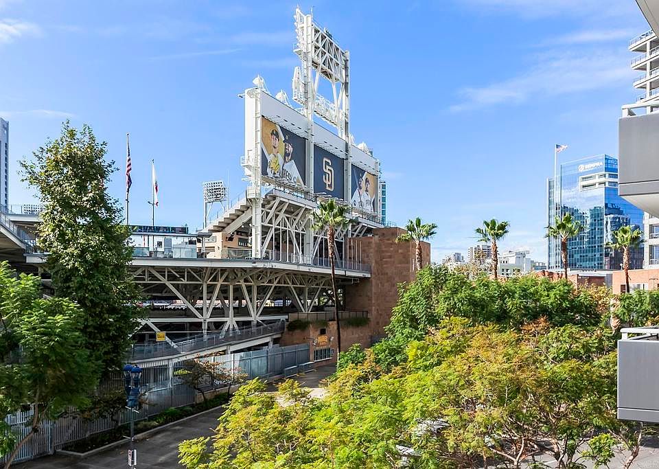 Nestled in the heart of downtown, this Ballpark View Condo features 2 bedrooms and 2 bathrooms, offering the perfect blend of urban convenience and modern luxury. Step inside to find a bright, open-layout residence with a beautifully appointed kitchen complete with granite countertops and stainless-steel appliances. With its desirable Southwest-facing orientation, the home is filled with natural light through expansive windows. Additional perks include two assigned parking spaces and a deeded storage unit. This secure, gated community provides an array of amenities, including 24-hour security, on-site management, an exercise room, recreation room, and a terrace deck with BBQs and comfortable seating. Situated just across the street from Petco Park and the downtown library and within walking distance to the San Diego Bay, Embarcadero, Convention Center, and beautiful tree-lined walkways this condo truly places the best of downtown living at your doorstep.