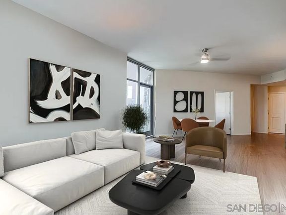 Experience the best of San Diego living in this very large 2 bedroom/2-bathroom home. The residence features luxury vinyl plank flooring, beautiful kitchen with granite counter tops and stainless-steel appliances including: dishwasher, refrigerator, microwave. Other condo amenities include: updated walk-in shower in primary bath, A/C, washer/dryer (inside unit), This North-East facing condo has large windows which allow plenty of natural sunlight. Two assigned parking spaces and a deeded storage unit are included. Complex features include 24 hour security, on-site management, exercise room, recreation room, terrace deck w/ BBQ & seating, gated community across the street from Petco Park & downtown library. Walking distance to all including, SD Bay, Embarcadero, Convention Center, walkways lined with trees for extra natural beauty.
