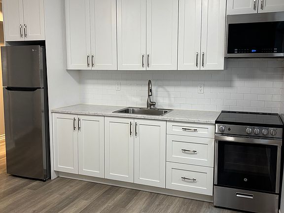 Renovated two-bedroom residenceOpen-concept livingModern finishesSleek stainless steel appliancesBright inviting atmosphere