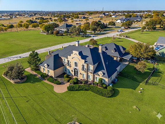 A Northwest Tarrant landmark, this home is perched high on a hill affording incredible views all the way to downtown Fort Worth. Including nearly 4.5 acres with pond, this luxurious 4,757-sq-ft custom home offers an exceptional blend of elegance and comfort, featuring a sparkling inground pool with spa, private guest quarters, and ample space for pets. Prime LOCATION, LOCATION, LOCATION, in the heart of Alliance with quick access to literally EVERYTHING. If you are looking for THE HOME that everyone knows, this home is for you!!! Guests are greeted with an impressive entryway, towering ceilings, and a grand staircase, ushering them into the spacious family room with its impressive wall of windows overlooking the private courtyard and pool, flooding the home with natural light. This Entertainer's dream offers 2 large living spaces, an upstairs game room & wet bar with plenty of room for a pool table, and a separate media room! The chef’s kitchen boasts a large island with 6-burner gas cooktop, granite countertops, top-of-the-line custom-matched appliances, farmhouse sink, double ovens, and an inviting breakfast bar. The recently remodeled home’s other notable features include rich hardwood and oversized tile flooring, popular neutral tones, generously sized bedrooms with abundant storage & extensive built-ins perfect for displaying artwork and more. The primary suite exudes warmth with its own fireplace and a spa-inspired bath featuring a soaking tub, separate shower, dual sinks, and a spacious walk-in closet. Need space for a Parent, Adult Children, or Home Business-Office? The 1,200 sqft private guest home features its own kitchen, living room, dining area, two bedrooms, and two bathrooms with laundry space. This property is set up perfectly to build your shop at the back corner with its own separate entry off of Harmon Road for all your toys, RV, or business equipment. There is also a Potential Future commercial opportunity as well!! Truly An Absolute Must SEE!