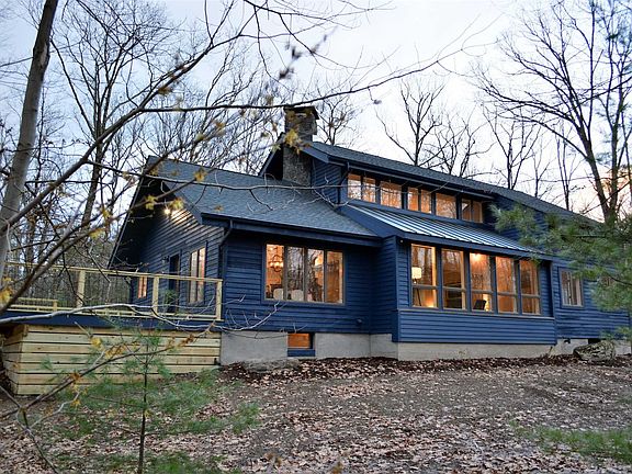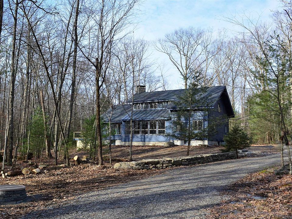 Renovated to perfection! Move right in to this Stone Ridge retreat privately nestled in the woods and only minutes to the historic village center. The 1980's home has undergone a masterful reconfiguration into an open design modern home. The large windows bring in amazing natural light and the lovely cook's kitchen with quartz counters, bluestone island and Bertazzoni applicances opens onto the generous and bright public space in keeping with today's living. The center of gravity is the sculptural bluestone chimney joining the kitchen, dining and living areas into a harmonious living space. An open firebox in the dining area and a wood burning soapstone stove in the living room creates warm and inviting ambiance as well as efficient heat assist. Fresh and gleaming wideboard floors have been added throughout, as well as all new baths, laundry, pantry and roof. With a large private bedroom and bath on the first floor and two bedrooms and bath on the second, this floor plan works for many homeowners. Central air on the first floor is joined by new ductless splits in living room and all three bedrooms. Enjoy summer on the new deck and have free reign in creating your private outdoor oasis.