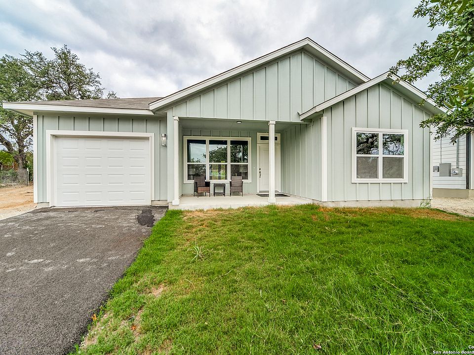 **5k Seller concession to go towards closing costs or to buy down the rate** Seller financing available, 7% interest rate with 10% down! Charming 3 bed/2 bath custom home in highly sought after area on .25 acres. Situated in an emerging neighborhood with expansive Hill Country views from both shaded front and back porches. The front of the property is highlighted by mature oaks and the backyard is protected from additional development so privacy and nature are guaranteed. No details have been overlooked by this high-end home builder! Upgraded features abound: Granite countertops throughout (with breakfast bar in kitchen), wood look flooring, custom cabinetry, stainless steel appliances, and spacious 12' ceilings in the open concept living area with picture window providing an abundance of natural light. Energy efficient HVAC and insulation. This airy open floor plan is perfect for first time home buyers or those looking to enjoy a neighborhood with no HOA fees or restrictions.