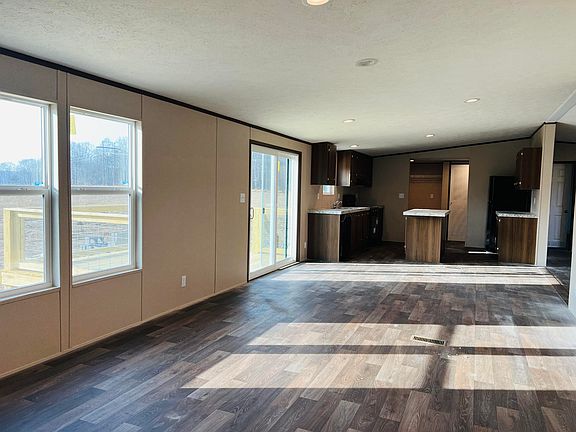 This new four-bedroom, two-bathroom double-wide home sits on a permanent foundation within minutes of Lake Cumberland Marina. The home features an open-concept living area, family room, with a spacious kitchen, complete with a large island, new appliances, and custom cabinetry.
