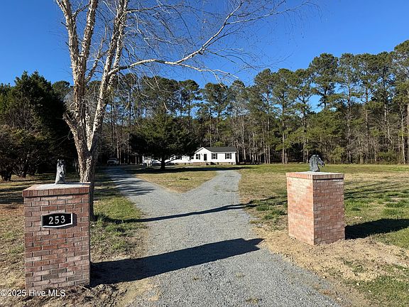 Welcome to 253 Ferris Drive — a beautifully updated property that blends modern upgrades with peaceful, country living on 5 acres. As you arrive, you're greeted by a stately entrance with two brick pillars and a large koi pond with a fountain — a unique and welcoming touch that sets this home apart. Major exterior improvements have already been taken care of, including a brand-new roof, gutters, fascia, and all-new windows, giving the home a fresh, clean look and long-term peace of mind. Step inside to find a completely renovated interior featuring new flooring throughout, quartz countertops, new appliances, and thoughtful finishes like a tiled kitchen backsplash and ceramic tile in the hall bath. Every space has been refreshed to offer comfort, style, and function. The land offers plenty of room to roam, perfect for horses or livestock, and includes a run-in shed with running water, plus two powered storage buildings. The rear of the property features road frontage on paved Rooks Road, with a culvert already installed, offering the option to create a secondary or primary entrance in the future. Located just 14 minutes from Burgaw and 35 minutes from Wilmington, this property offers the space and freedom of rural life without sacrificing convenience. High-speed internet is available, making work-from-home or streaming a breeze. Whether you're looking to start a small farm, raise animals, or simply enjoy wide open space, 253 Ferris Drive is ready to welcome you home.