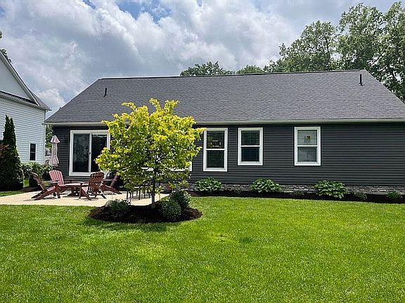 Open and airy floor plan custom built 3 bedroom, 2 bath, energy efficient ranch built in 2017 in the City of North Canton. The home is on a .26 acre lot with 1,747 square feet on the main level and a full unfinished insulated basement. The home features include cathedral ceilings in the great room and second bedroom, dinette with additional counter seating at the large kitchen island, granite countertops, two pantries, main level laundry, walk-in master bath and closet, large closets. There is a 16X20 patio and a large covered front porch. The home has an oversized 22X28 insulated and heated garage. Price includes all kitchen appliances and window treatments. Public sewer and water. The home offers easy walking distance to stores, restaurants, library and schools. No HOA.